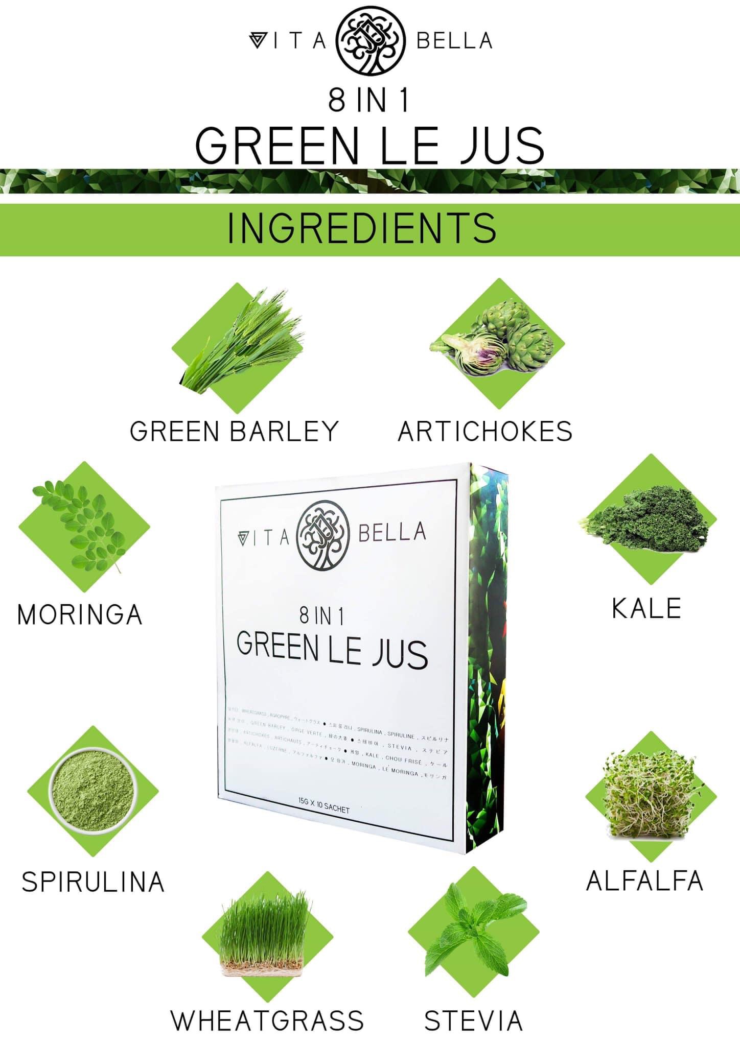Vita Bella Green Le Jus works in your body through a combination of carefully selected ingredients that are known for their potential health benefits. Here are the major ways in which Vita Bella may work in your body:
