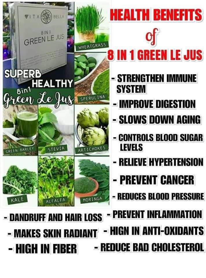 Green Le Jus has high amounts of antioxidants that protect skin by blocking the production of enzymes that break down collagen in sun-damaged skin. Collagen helps in allowing one to have a glowing and radiant skin!