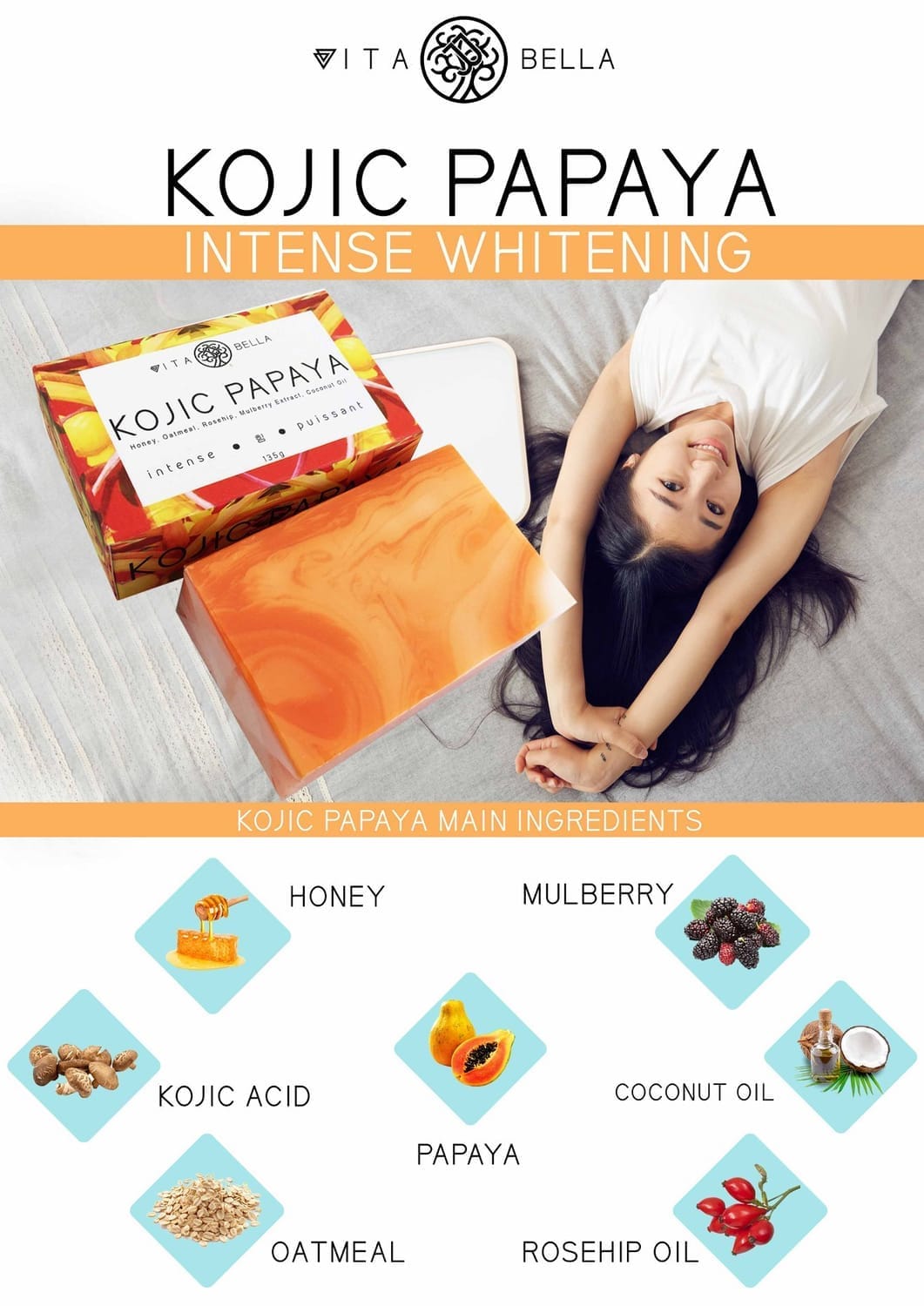 Regular use of kojic papaya soap helps fade scars, sunspots, melasma, and other skin discolorations.